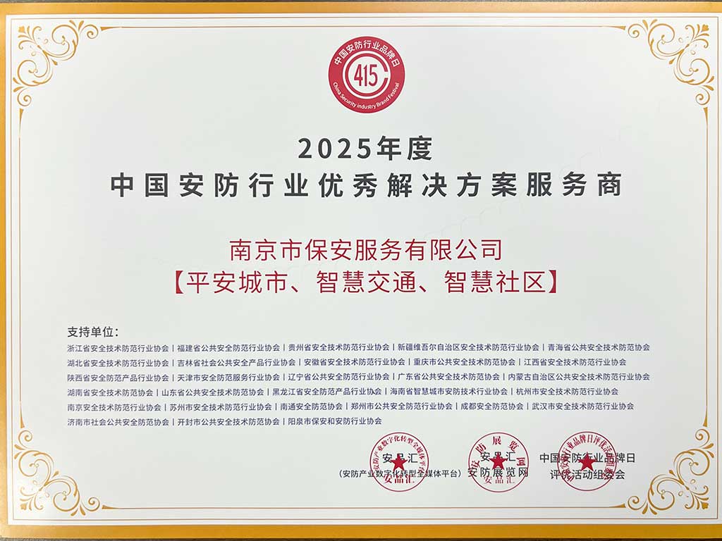 南京市保安服務有限公司(原南京市保安服務總公司)成立于1987年4月,是一個有著悠久安保經營歷史和安保經驗沉淀的大型國有保安企業,現為中國保安協會常務理事單位,江蘇省保安協會常務理事單位,南京市保安協會副會長單位,江蘇省一級保安服務公司。